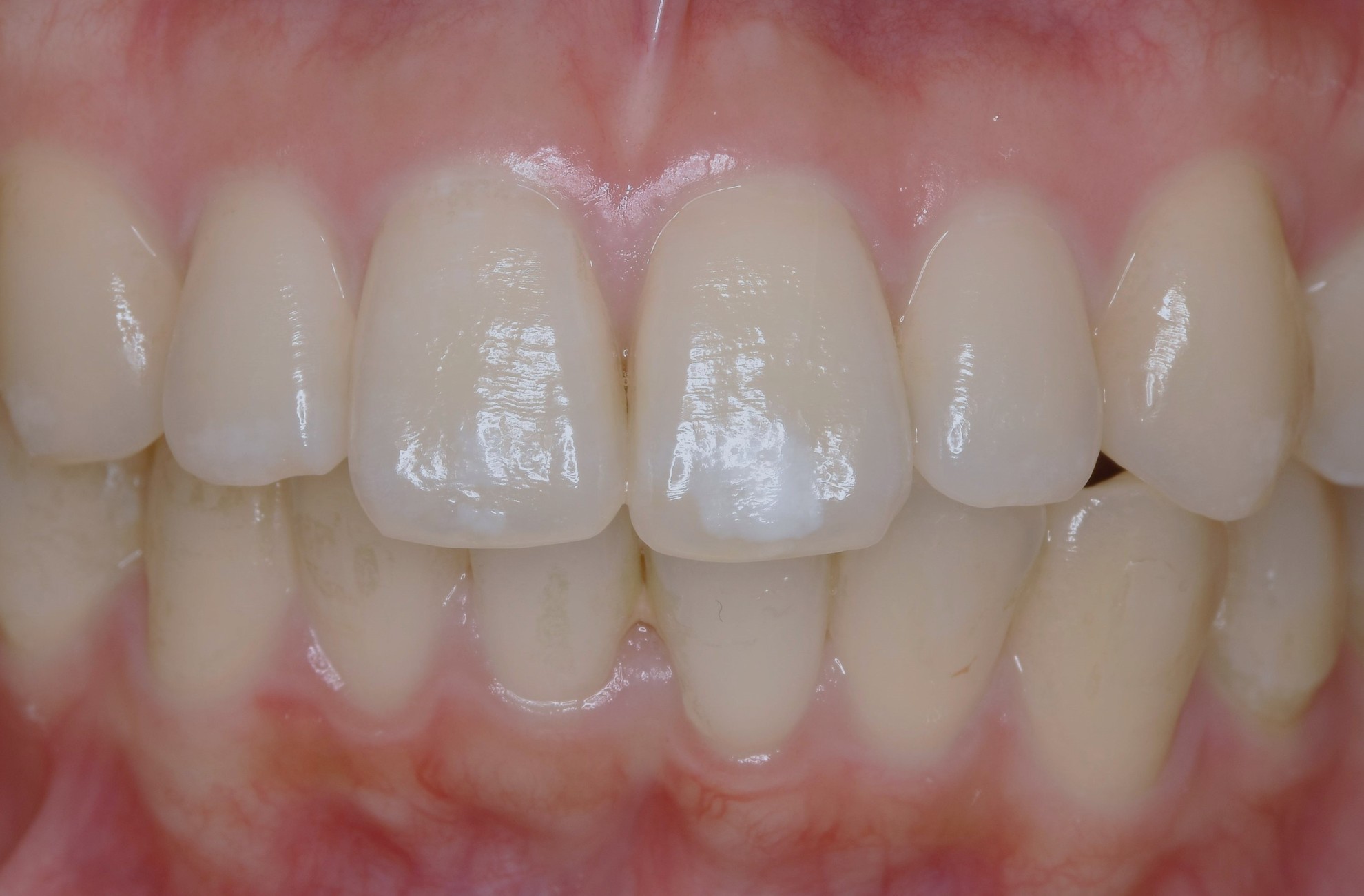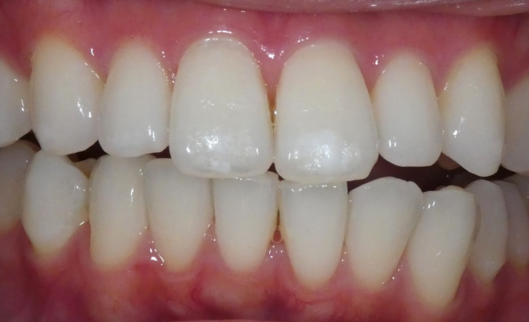 術前:前歯2本にホワイトスポットが存在