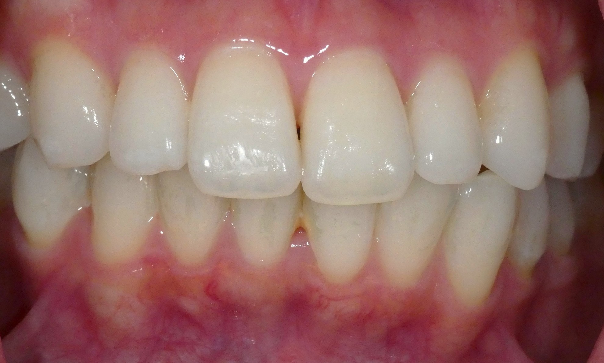 術前:前歯2本にホワイトスポットが存在